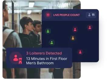 Crowding and Loitering Detection: Monitors for high occupancy and loitering, which can indicate unhealthy or dangerous behaviors, in areas like bathrooms and locker rooms.